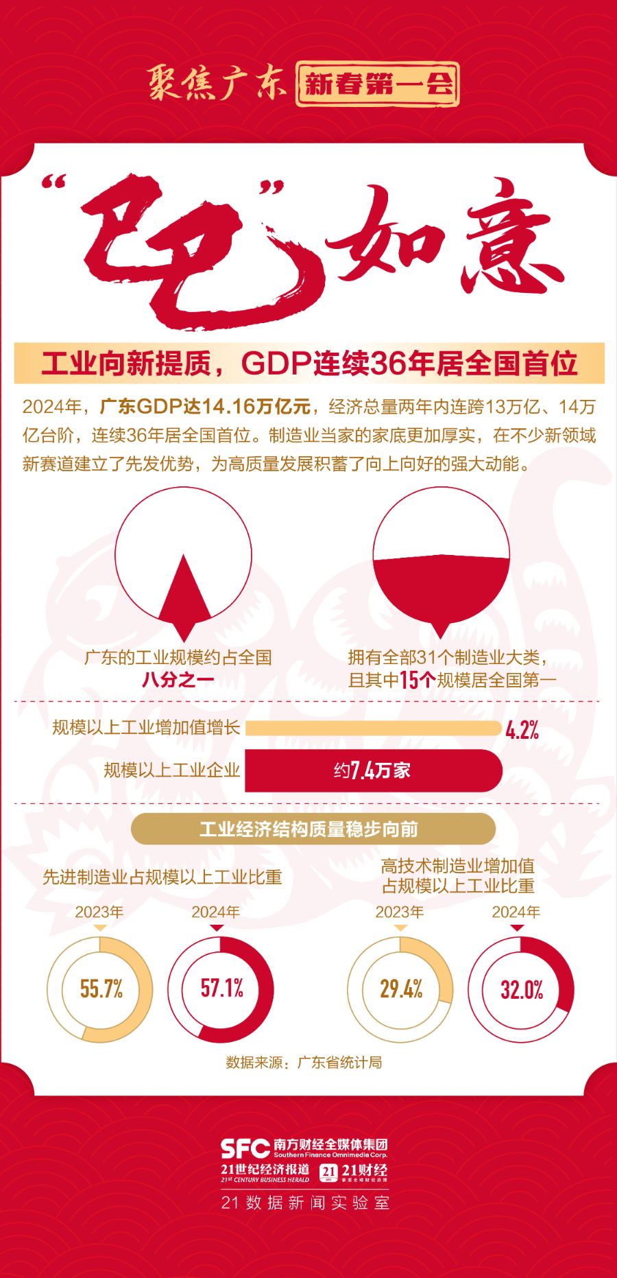 一元复始,万象更新,2月5日,乙巳蛇年首个工作日,广东省委、省政府再度召开新春开年第一会——全省高质量发展大会,为广东经济高质量发展描绘奋进蓝图。